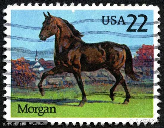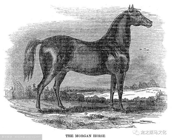 摩根马是美国育成的第一个马品种。它早期发展在新英格兰州,它的起源乃出于偶然。当时有一养马人贾斯汀·摩根有一匹公马,这匹公马是英纯血和阿拉伯马的杂种,表现出良好的外形和卓越的工作能力。体质结实,结构匀称,体高142cm,体重470kg,毛色为黑骝。头颈高昂,眼大有神,耳小竖直、灵活。体躯丰圆,背腰短广,肋骨紧密而深长。肩、系倾斜,四肢直立,肢势端正,步样伸畅,体态优美,富有悍威。在短距离比赛时表现出卓越的速力,体重超过其它马数百磅。这匹公马随主人移居到美国维尔蒙特州,遂发展成为一个家系的始祖。以后随后代的增多,逐步发展成立一个品种,并以其主人的名字命名为摩根马。