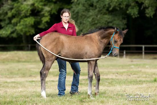 牵行:小马驹需要学会安静地服从骑手的牵引。而在被拴住时应该安静站立则可以在小马驹慢慢长大,成熟后再慢慢进行,避免小马驹因为受惊而伤到自己。