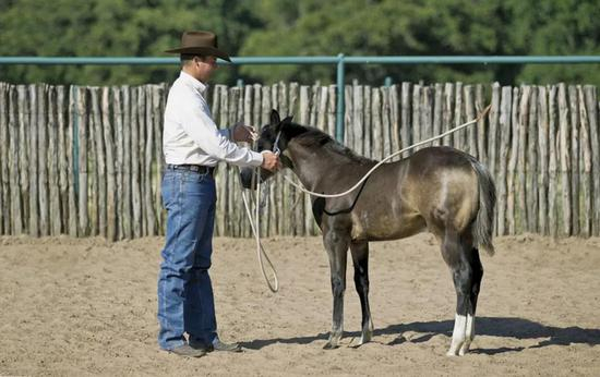 “可以说对马匹的调教从它出生那一刻起就开始了”。当然这里的调教不是说开始打圈、教他们跑步出腿、换方向,或是立定等“高难度”的动作,而是佩戴笼头、牵引、抚摸等日常基础动作。克林顿·安德森曾说过“马匹调教开始地越早,小马驹学习正确动作也越快,越不会养成坏的习惯”。不能因为小马驹是宝宝就认为它们不能学习,应该开开心心地玩,而直到他们长到1000磅时才发现他们不让戴笼头、不让修蹄、不尊重骑手。