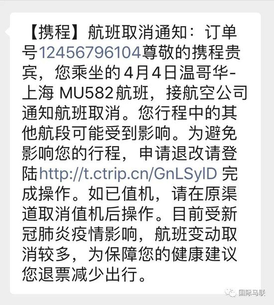 在加拿大留学的谢闻佳、朱晨蕊以及在美国留学的李若词则未能幸运的“中头彩”。3月初,朱晨蕊的父母特意从上海给二人快递了口罩,但随着疫情的持续暴发以及学校停课通知的最终发布,在3月中下旬便开始预订回国机票的谢闻佳和朱晨蕊,好不容易抢到了4月4日从温哥华飞上海的航班,但在3月27日接到航班取消的通知。此刻,他们只能预定到4月20日从多伦多途径伊斯坦布尔飞上海的航班以及5月1日从多伦多途径东京飞上海的航班,但是否能幸运的中头彩还不得而知。