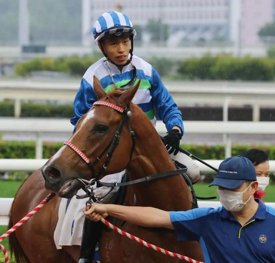 何泽尧说:‘带头并非我们原定的策略,但坐骑出闸迅速,反而一众对手似乎均不太愿意上前,因此我便让坐骑以轻松的步伐领放,最终马儿亦能保持劲势率先冲过终点。’