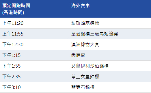 女皇伊利沙伯锦标赛马日的转播赛事,将于4月11日上午11:20举行。