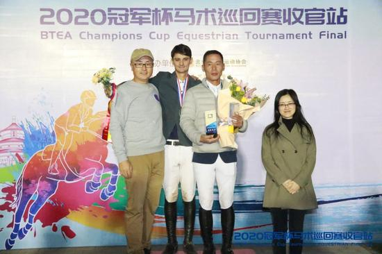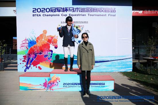 100CM颁奖嘉宾:国际马术联合会场地障碍项目三星级裁判长 沈筱玥女士;路线设计师 孙志坚先生。