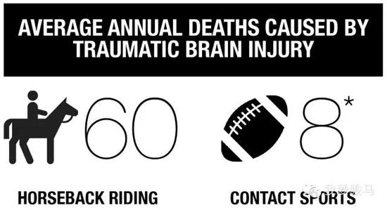 每年大约有8个人在从事类似美式橄榄球之类的激烈运动时脑外伤死亡,但每年有60个骑手因马术运动事故而死亡。在所有从事体育运动而脑外伤事故中,马术运动员占到12%,比例最大。