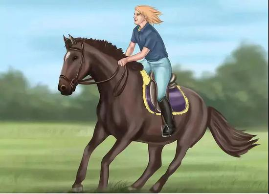 在拉缰的同时应加上重心的辅助。人在马鞍上稍微后仰,使重心后移,也会增加马奔跑的阻力,从而使马迅速停下来。
