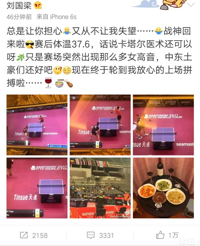 “总是让你担心,又从不让我失望……战神回来啦,赛后体温37.6,话说卡塔尔医术还可以呀,只是赛场突然出现那么多女高音,中东土豪们还好吧,现在终于轮到我放心的上场拼搏啦……。”听到张继科退烧,又顺利晋级男单第二轮,刘月半心情瞬间雨转晴。