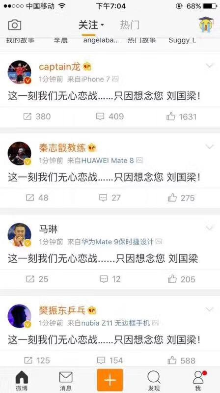 “这一刻我们无心恋战……。只因想念您,刘国梁!”马龙、许昕、樊振东、秦志戬、马琳等运动员、教练员先后在自己的社交网络上写下这句相同的话。这也是刘国梁去职一事发酵至此,国乒内部球员和教练们第一次公开就此发声。