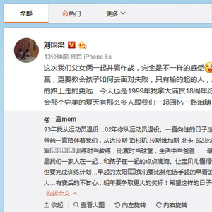刘国梁转发了妻子的微博
