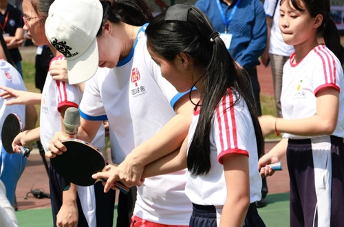 仪式结束,王楠和儿时的启蒙恩师张晶清教练带着志愿者教练员们马不停蹄来到了万安学校,为这里了孩子带来一堂特别的体育课。王楠说,相比体育器材,专业体育教师的缺乏是是乡村学校面临的更大的困难。小球大爱每到一站,王楠都会坚持亲自给孩子们上一堂课,变身“体育老师”。在她看来,这个身份亲切且责任重大。