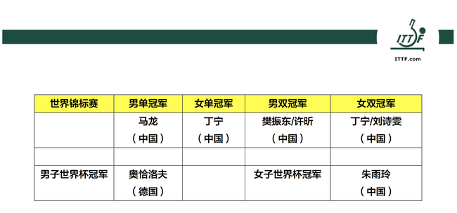 另外,2017年的两个世界级重大比赛上,中国队包揽了含金量最重的世界锦标赛男女单双打等四项冠军;男子世界杯冠军由德国奥恰洛夫获得,女子世界杯则是中国朱雨玲折桂。这也意味着,在三个男子项目中,中国队的胜率高达近7成,中国女乒则保持不败,胜率100%。