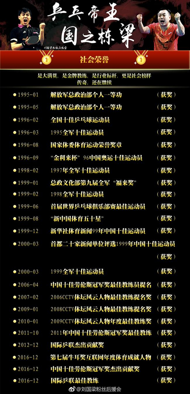 网友罗列刘国梁生涯重大荣誉 看完下巴都掉了