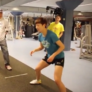 樊振东在接受采访的时候表示:“今天是上下午训练,属于比较正常,在这训练和在北京训练相比换了个环境,人轻松一点,希望这样的心态能一直延续到世锦赛。”体能训练时,王皓给樊振东示范如何利用器械锻炼平衡,樊振东感觉很受用。