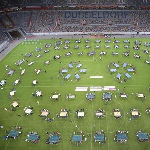 当地足球俱乐部的成功让人欣喜,但千人同时打乒乓球,这也是一项惊人的成就,组织者们有理由为此感到自豪,他们为普通人群提供了一个享受乒乓球乐趣的机会,也让他们有机会体会成为冠军的感觉。乒乓球,这是一项人们每天都可以接触到的运动,而在这一天,每一个人都化身成为杜塞尔多夫俱乐部的一员。乒乓球,与你我同行。