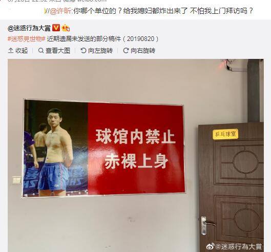 当此截图被发出来之后,许昕曾这样回应过:你哪个单位的?给我媳妇都炸出来了 不怕我上门拜访吗?