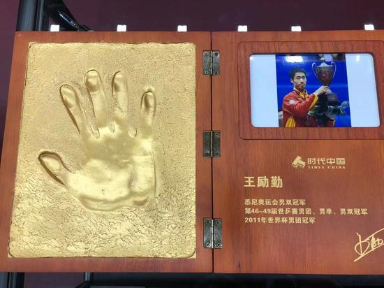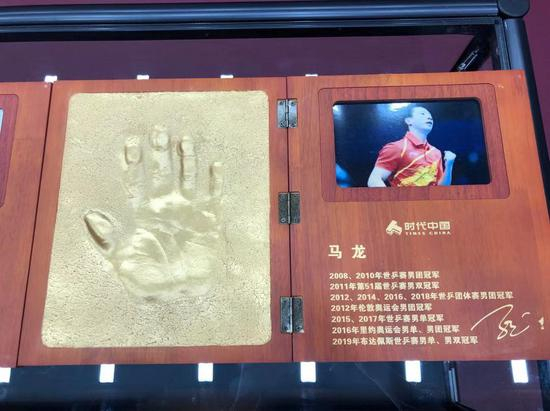 每个手模旁边,都配有世界冠军曾经取得的成绩。看得出徐寅生的手掌很宽厚、王励勤的手指很修长……因为每个世界冠军手部按压的力度不同,手模显示也略有区别。比如马龙的手模,能清楚地看到手掌的纹路。相信这些手模与公众见面时,也会让球迷津津乐道。