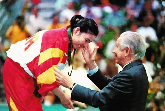 1992年巴塞罗那奥运会,一张经典的照片定格在了乒乓球女单颁奖现场,萨马兰奇如愿以偿。