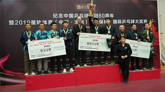 纪念中国乒乓球夺冠60周年暨2019星轨体育“天保杯”国际乒乓球大奖赛11月24日在中国涿州完美收官。这个“民间世乒赛团体赛”的总奖金超过30万元,吸引了来自中国、美国、日本等国家与地区将近200名民间高手参赛。拥有国乒第101位世界冠军郝帅以及第102位世界冠军张超的中国天保队荣膺冠军,斩获15万元奖金。