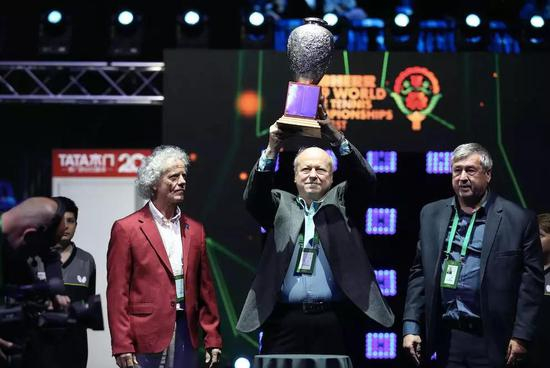 4月的匈牙利会展中心,在布达佩斯世乒赛男双决赛开始前,三位老人携手将伊朗杯带入场内。当他们一起举起奖杯合影留念时,很多年轻的球迷都不知道场上站的究竟是谁,但熟知世界乒乓球历史的老球迷们却早已热泪盈眶。他们就是匈牙利乒乓球名宿,克兰帕尔、约尼尔和盖尔盖伊。