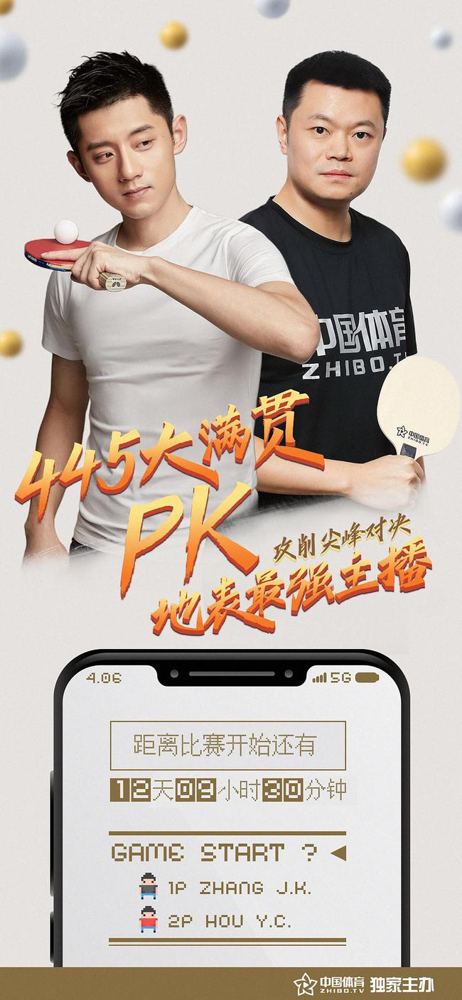 北京时间4月6消息,《中国体育》zhibo.tv官方宣布,该平台将于4月18日为球迷带来一场乒乓球重磅对决——张继科VS侯英超“攻削大战”,阔别赛场近两年的大满冠选手张继科将在这场比赛中对阵以39岁“高龄”拿下全国乒乓锦标赛男单冠军的侯英超!
