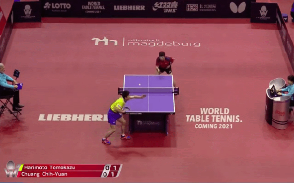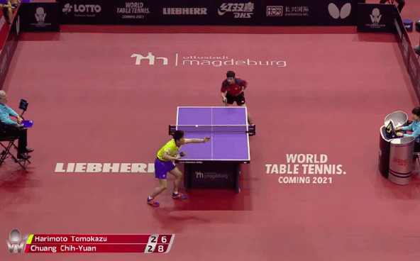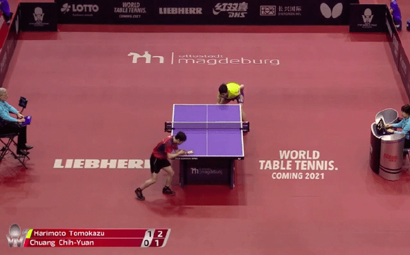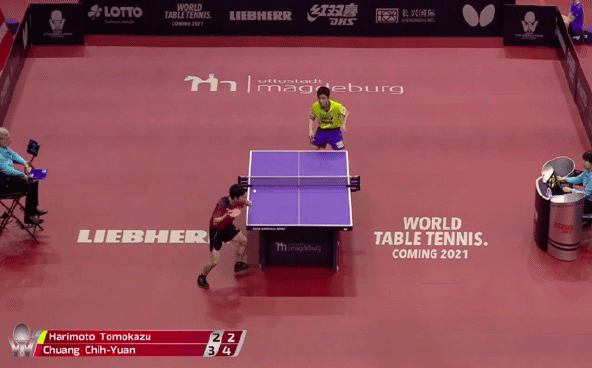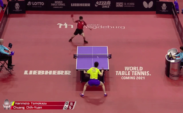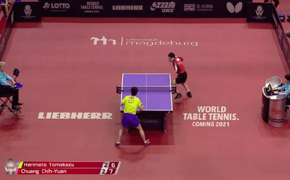 即便张本智和有上手的机会,他的进攻落点也一直被对方看得很死,很难在一两板之内解决战斗,而战线一旦被拖长,庄智渊的耐心也就成了最大的优势。