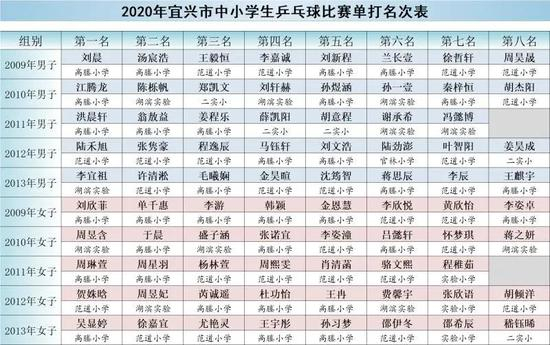 宜兴市成功举办2020年中小学生乒乓球比赛