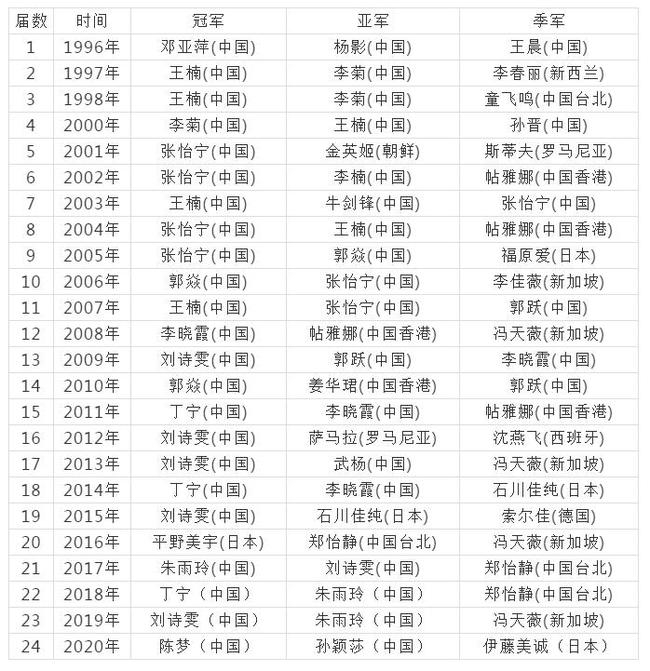 从邓亚萍到陈梦 这些数据回顾女子世界杯
