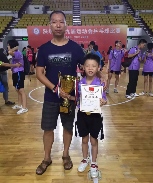 在宝安体校训练的三四年时间里,孙杨从最小的“小豆包”逐步成长成为队中的“男一号”。平日训练中,附近的球友们偶尔来体校打球,张超都会推荐孙杨和大家打上几盘。记者也是在2016年在宝安体校打球时认识了当时只有8岁的孙杨,交手过后最大的感触就是,这个小家伙手感真好,发球、战术方面的变化也很多,有点像十多岁的孩子打出来的球。那一年,恰逢深圳市举办第九届运动会,8岁的孙杨在比赛中一路横扫,毫无悬念地摘得男子丁组单打冠军。