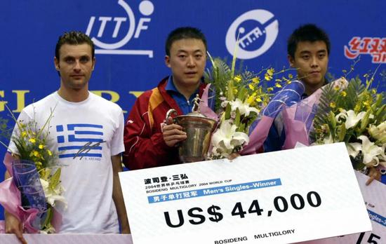 2004年雅典奥运会,志在冲击双冠的马琳在单打中又遭遇重创,他在1/8决赛输给了瓦尔德内尔。这场失利也让马琳消沉了很久,直到年底世界杯,他在半决赛中4比0击败队友王皓后,又在决赛1比2落后的情况下逆转战胜了格林卡,成为乒坛史上首位“三夺世界杯”的男子运动员,重拾自信的同时也赢得了“世界杯先生”的美誉。