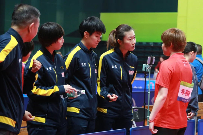 丁宁同样带领北京燕京啤酒队3比0击败了安徽国轩队。第一盘由李雅可对阵姜安琪,两个人在第一局出现了“爆分”情况,李雅可23:21获胜,虽然输掉了第二局,但是她很快调整了状态,3比1击败对手为北京队拿下第一分。随后丁宁和郭雨涵都分别以3比0战胜对手。