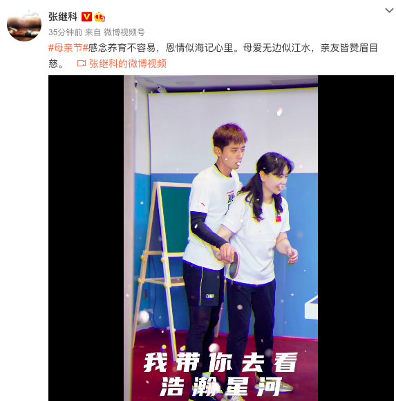 张继科还制作了一段小视频,配文:“你带我来到这个世界,我带你去看浩瀚星河。”