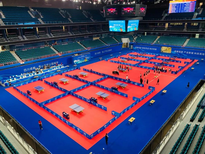 成都高新区体育中心位于高新区中和片区,中和一线北侧,成仁快速路西侧,是高新区体育产业新引擎,也是成都文体旅商综合体新地标。体育中心体育馆作为一所多功能综合性场馆,除了可以举办乒乓球赛事外,还能满足篮球、排球、体操、冰球、短道速滑等国际比赛要求,最多可容纳12000人观赛。身处这样一所软硬件设施都堪称世界一流的场馆中,前来参赛的教练员和运动员们纷纷表示,都体会到打世界大赛的感觉了。