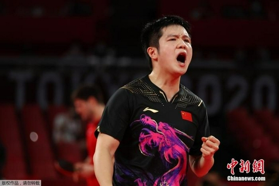 7月29日,在东京奥运会乒乓球男单半决赛中,中国选手樊振东4:3战胜中国台北选手林昀儒,挺进决赛。中新社记者 杜洋 摄