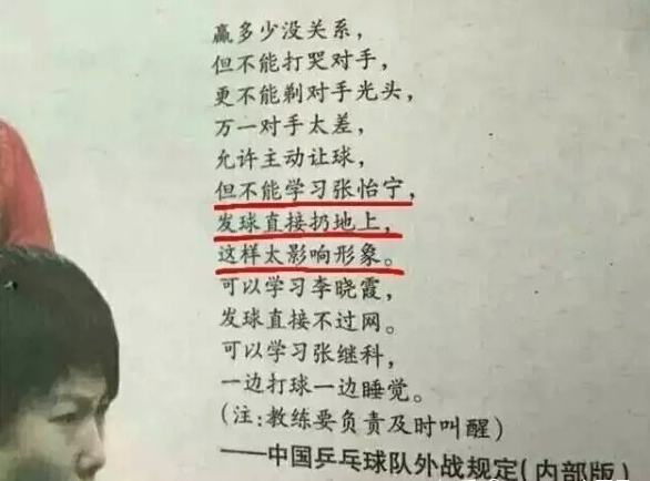 时间回到2008年北京奥运会乒乓球女单第四轮,张怡宁在同福原爱的比赛中以9比0领先。张怡宁不想让福原爱输得太惨,随后发球时故意将球发到了桌子底下,让了1分。