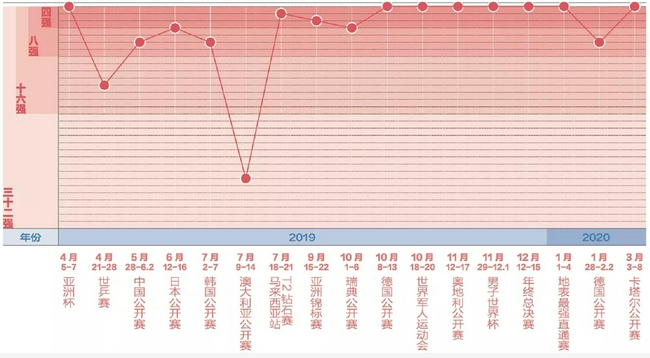 世乒赛后,他陷入低谷。韩国公开赛2比4负于郑荣植、澳大利亚公开赛2比4不敌弗朗西斯卡、T2马来西亚站1比4输给林昀儒……