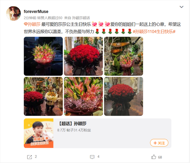 北京时间11月4日,国乒“小魔王”孙颖莎迎来了她的21岁生日。从凌晨开始,球迷、记者和队友就纷纷在微博上送出祝福,而线下,球迷送的花也把国乒集训基地弄成了“花海”。