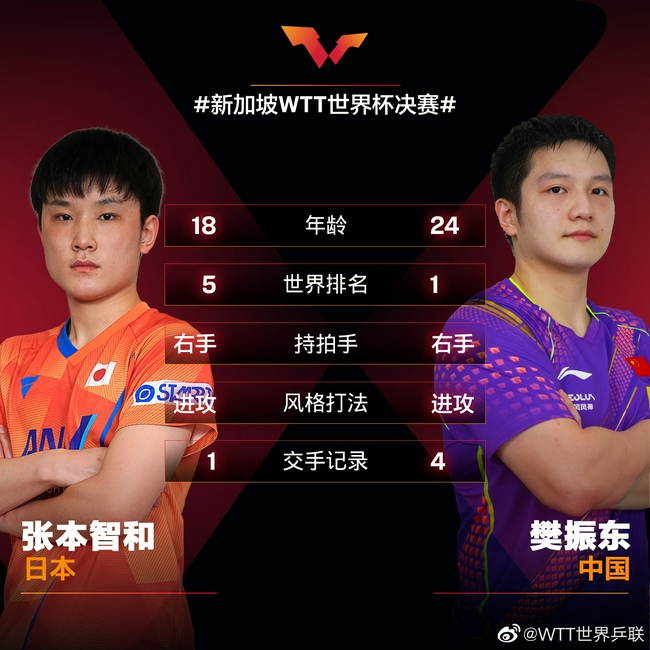 本场比赛是樊振东与张本智和在国际赛场上的第6次交手。此前5次,“小胖”4胜1负占据优势,且在最近3次交锋(2019年亚洲杯、团体世界杯和男乒世界杯)中,取得3连胜。
