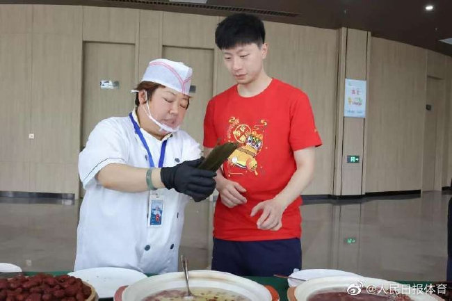 国乒迎端午包粽子 马龙樊振东分别展示劳动成果