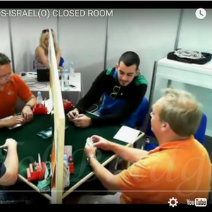 为了提交更多的材料向世人证明以色列人的作弊行为,昨天晚间(北京时间今天凌晨),布罗格兰德在他的Bridgecheaters网站中公布了三段2014年欧洲桥牌锦标赛的视频,其中首当其冲的就是著名的与荷兰队的明手事件。
