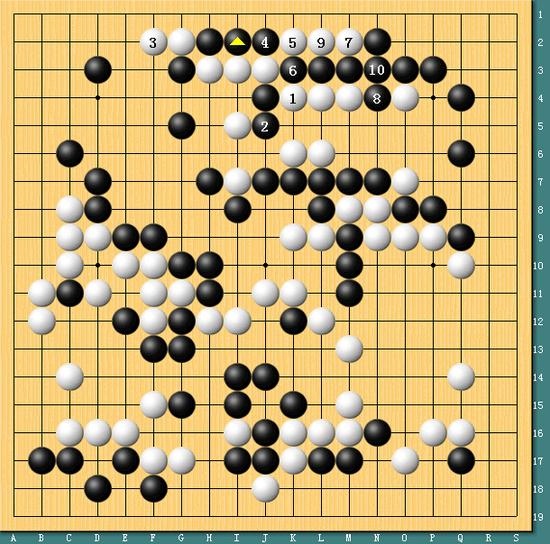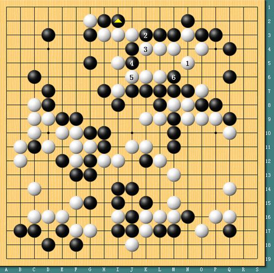 图四,正手。其实,在上边李世石在1位落子时,黑棋直接2-6位命令式进行,白棋大龙还是非常危险的,对于这个局面黑棋不能说有把握杀掉白龙,但白棋想做活也实非易事。