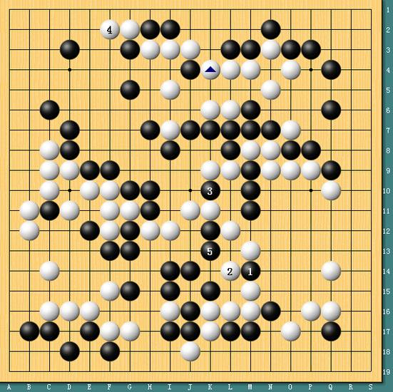 图三,被迫放弃屠龙。实战中唐韦星在中腹连续制造劫材,李世石根本理也不理,直接上边4位长做活大龙,虽然唐韦星此后在中腹制造出打劫对杀,但已经与胜负无关。