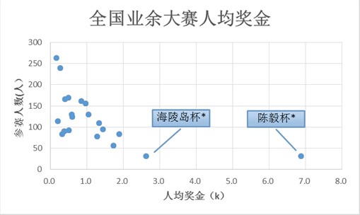 大量比赛的人均奖金都保持在2k以内,但是有2项比赛在这次对决中光荣胜出,它们是陈毅杯和海陵岛杯。如下图,