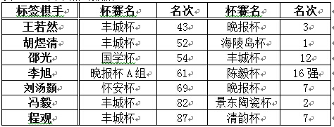 其中,豪门赛事陈毅杯依然独占鳌头,而传统业余大赛黄河杯因其不限制最小参赛年龄而逐渐为冲段少年所垄断的残酷现实使其排名榜尾。