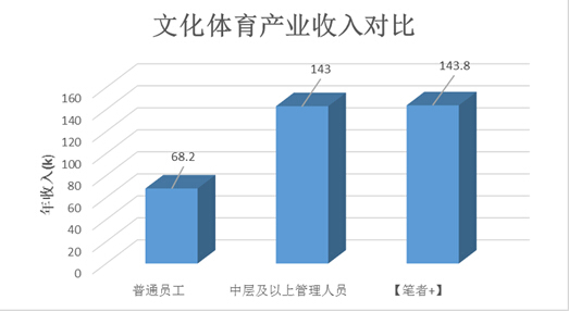 图表明了地告诉我们:文化体育产业中,中层及以上管理人员的平均工资已经基本与[笔者+]持平,而与公务员和事业单位同样客观的福利和灰色收入则远远超出白色收入的正常比较。