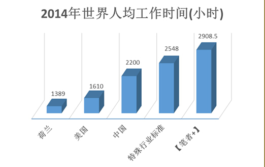 受万人敬仰的淘金狂人[笔者+],每年工作小时数竟然远远超过了世界特殊行业标准。特殊行业在中国被定义为医生、律师等需要额外超长工作时间的职业,并在相关文件中明文指出特殊行业的从业人员应该享受额外的工时报酬。然而,超过世界最高标准近400小时的[笔者+]呢?