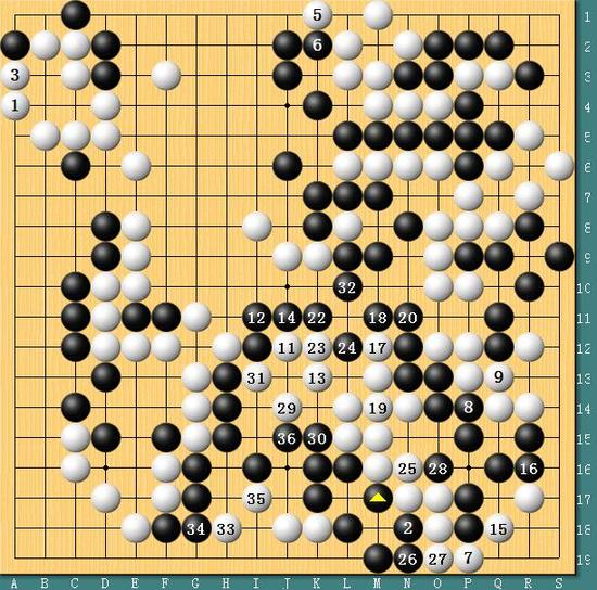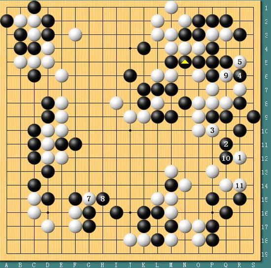 图五,大龙暴毙。实战中双方劫争形成转换,然而一力辽留有后续的杀招,直接将下方白棋大龙全部杀掉,胜负立判。赛后一力辽自己也表示,一度动摇了获胜的信心,是对手的失误才让自己赢了下来。