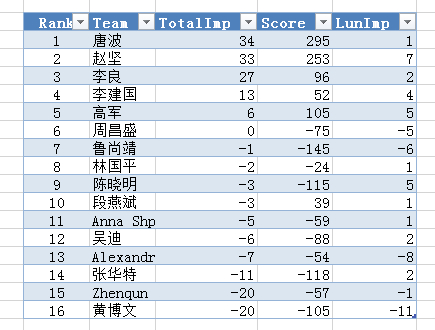 下午15时决赛准时打响,从4个牌桌的分布情况看50岁以内的中国男牌手成为了本次麻将运动会个人赛的主角,这和网友对冠军呼声最高的中国大妈有所出入,其中一男一女两位俄罗斯牌手在个人赛中展现出不俗的实力。经过决赛五圈的较量,分出了最终的胜负。