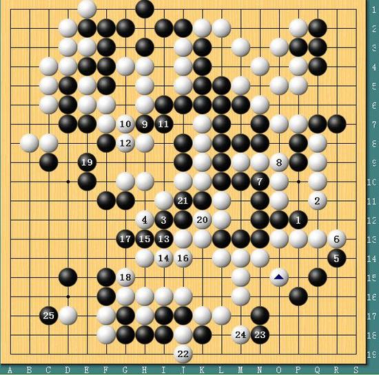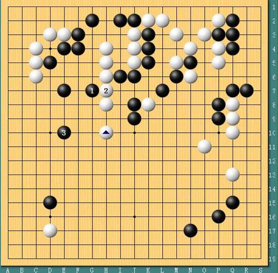 图六,反屠龙。实战时越在读秒中发现了白棋的弱点,由于白棋气紧,因此黑3位逃出来的时候,白棋是不敢直接与黑龙对杀的,而黑9-11先交换,再从13位冲出。唐韦星此时已经没有了选择余地,只好接受转换,白棋大龙遭时越反杀,棋局至此已经失去了悬念。时越表示,双方赛后研究,唐韦星也并没有太好的手段能够屠龙成功。