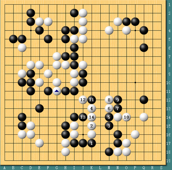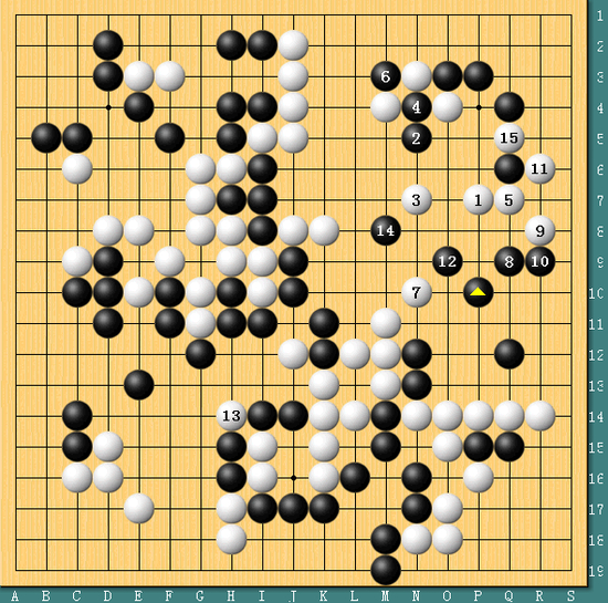 图六,胜负手无效。实战中朴永训1位尖冲,柯洁顺势放出2-4的胜负手,朴永训并未强杀黑棋,几手棋之后白棋只是简单安定,黑棋就不够了。柯洁此时已经无心恋战,爽快投子。