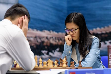 在“中国内部性别大战”中,侯逸凡和丁立人打成平手。丁立人执白对侯逸凡形成拉戈津防御,白棋在11回合走出新着,11、Rc1,黑棋不为所动,在大量交换子力后,白棋稍有主动权,白棋21、Nb1迂回进攻看上去是好计划,其实不如简单的21、Nf3直接攻击,在21、……g4 22、Ne5,白棋子力位置好。对局被黑棋调整了子力位置,致37回合,双方都无力进攻,成和局。