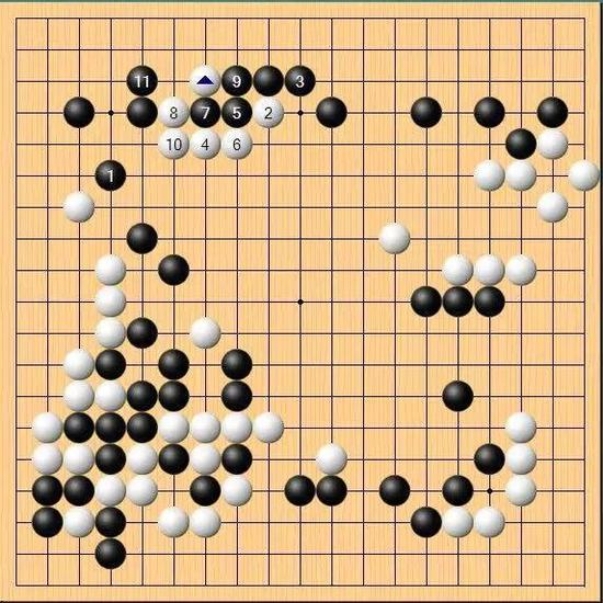 进了对局室,远远望见棋盘前,正好黄博士站起身来,担任裁判的韩国女棋手李多慧迅速在他的座位上坐下,大家围上去,和世石一起探讨棋局。我走近去,只有世石身后还有一个空挡。他们一直在摆后面的变化,我忍不住了,拉了拉右前方的金成龙,问,上面白棋压时,黑急所跳方的那手棋能长吗?不会死吧?世石显然是听见了,迅速回头看我一眼(是确认吧),然后回过头去,摆起那里的变化来。